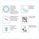 • Chrome drain and overflow included