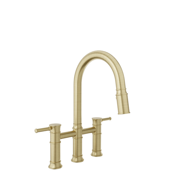 Bridge kitchen faucet with 2-function pull-down spray