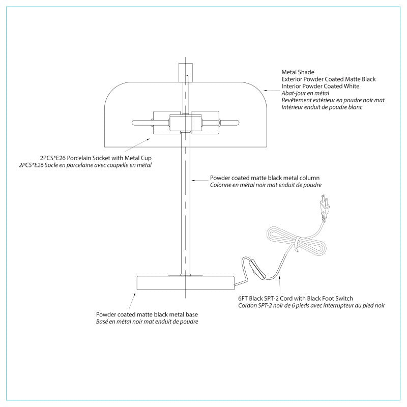 • Shade material: Metal