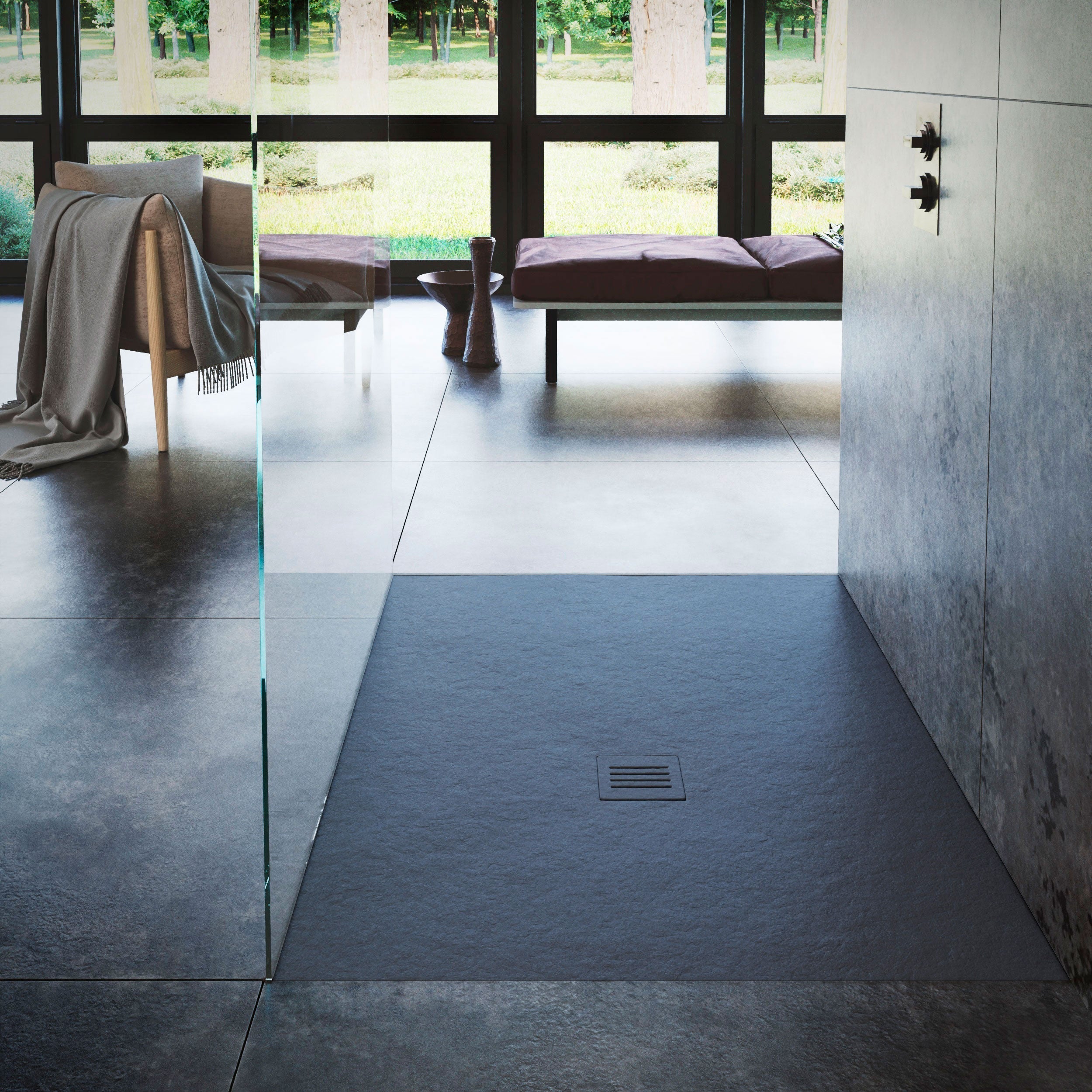 Created from high-density stone composite, the seamless design of the Era Shower Base is available in a stone textured finish and a choice of colours. The offset drain allows for universal Installation, making it a versatile and elegant alternative to traditional tiled showers. A perfect blend of durability and luxury, the Era elevates any bathroom space.