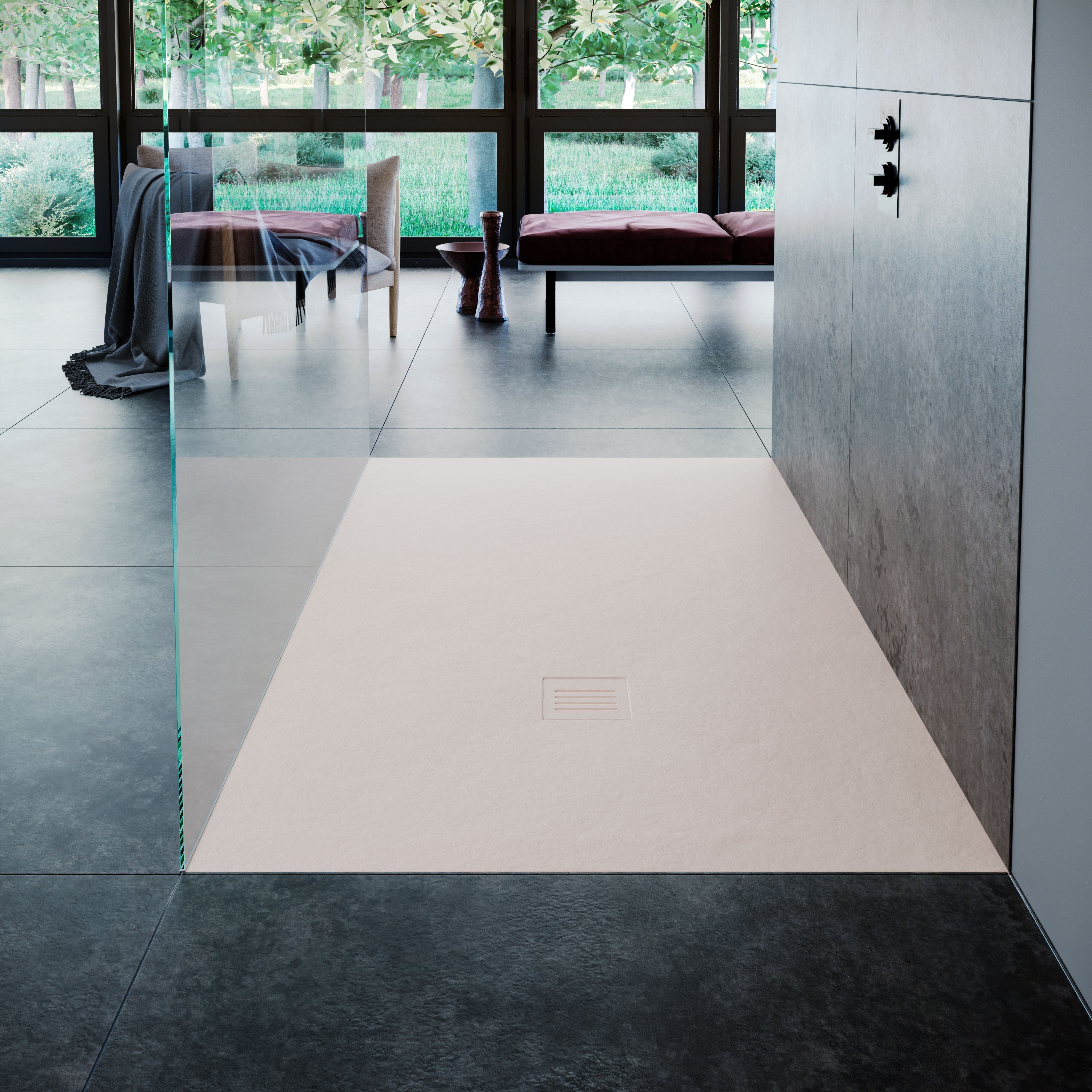 Created from high-density stone composite, the seamless design of the Era Shower Base is available in a stone textured finish and a choice of colours. The offset drain allows for universal Installation, making it a versatile and elegant alternative to traditional tiled showers. A perfect blend of durability and luxury, the Era elevates any bathroom space.