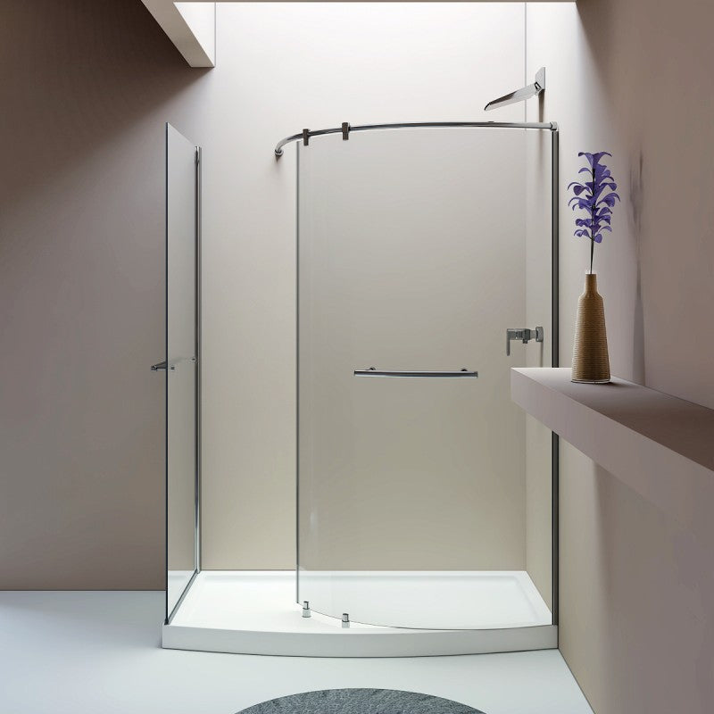 Frameless sliding doors, central opening