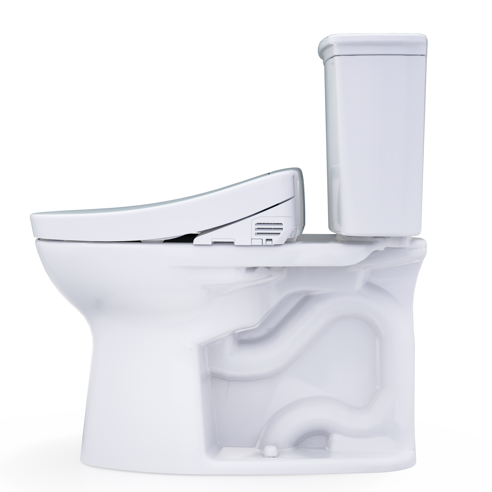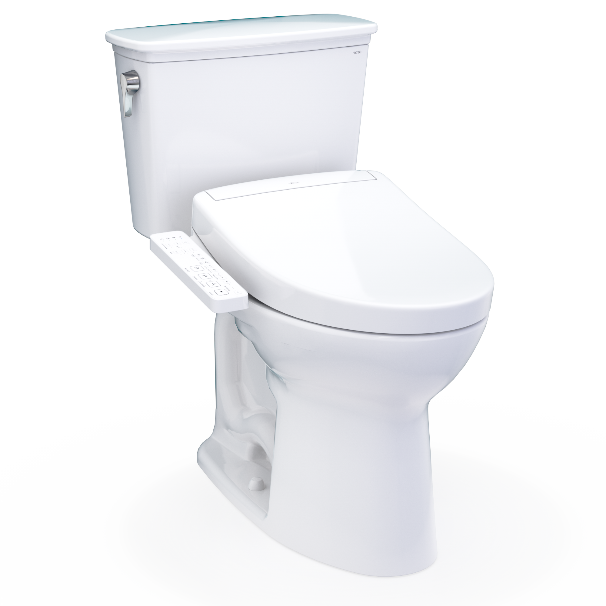 The TOTO® Drake® Transitional WASHLET®+ Two-Piece Elongated 1.28 GPF Universal Height TORNADO FLUSH® Toilet with S2 Bidet Seat is designed to conceal the WASHLET power cord and water supply hose for a seamless installation. Part of the newly redesigned S series, the WASHLET S2 features a built in night light, a soft rear spray, rear cleanse, and front cleanse with the option of an oscillating stream. The temperature and pressure of the water are adjustable with three temperature settings and five pressure settings. The controls are located on a convenient arm control panel. PREMIST® wets the surface of the toilet bowl, aiding in the removal of waste and resulting in a better clean. The S2 model utilizes TOTO's EWATER+® system when the wand self-cleans. EWATER+ transforms the water into a safe and powerful compound, creating peace of mind by cleaning the inside and outside of the wand before and after every use. The WASHLET features a heated SoftClose seat with three temperature settings. The Drake toilet features TOTO’s TORNADO FLUSH®, a rimless, hole-free design with dual-nozzles that creates a centrifugal washing action that assists in rinsing the bowl more efficiently. This version of the TOTO Drake includes CEFIONTECT®, a layer of exceptionally smooth glaze that minimizes waste from sticking to the ceramic. CEFIONTECT, coupled with PREMIST® and TORNADO FLUSH, assists to reduce the frequency of toilet cleanings, minimizing the usage of water, harsh chemicals, and time required for cleaning. This version of the TOTO Drake is designed in TOTO’s Universal Height, which allows for a more comfortable seat position across a wide range of users. This WASHLET+ toilet includes the WASHLET, Drake bowl and tank set with hardware, and toilet bolt caps. Compatible with T40 WASHLET+ electronic bidet seat and toilet bowl components only. Additional items needed for installation must be purchased separately: wax ring, toilet mounting bolts, and toilet water supply lines.