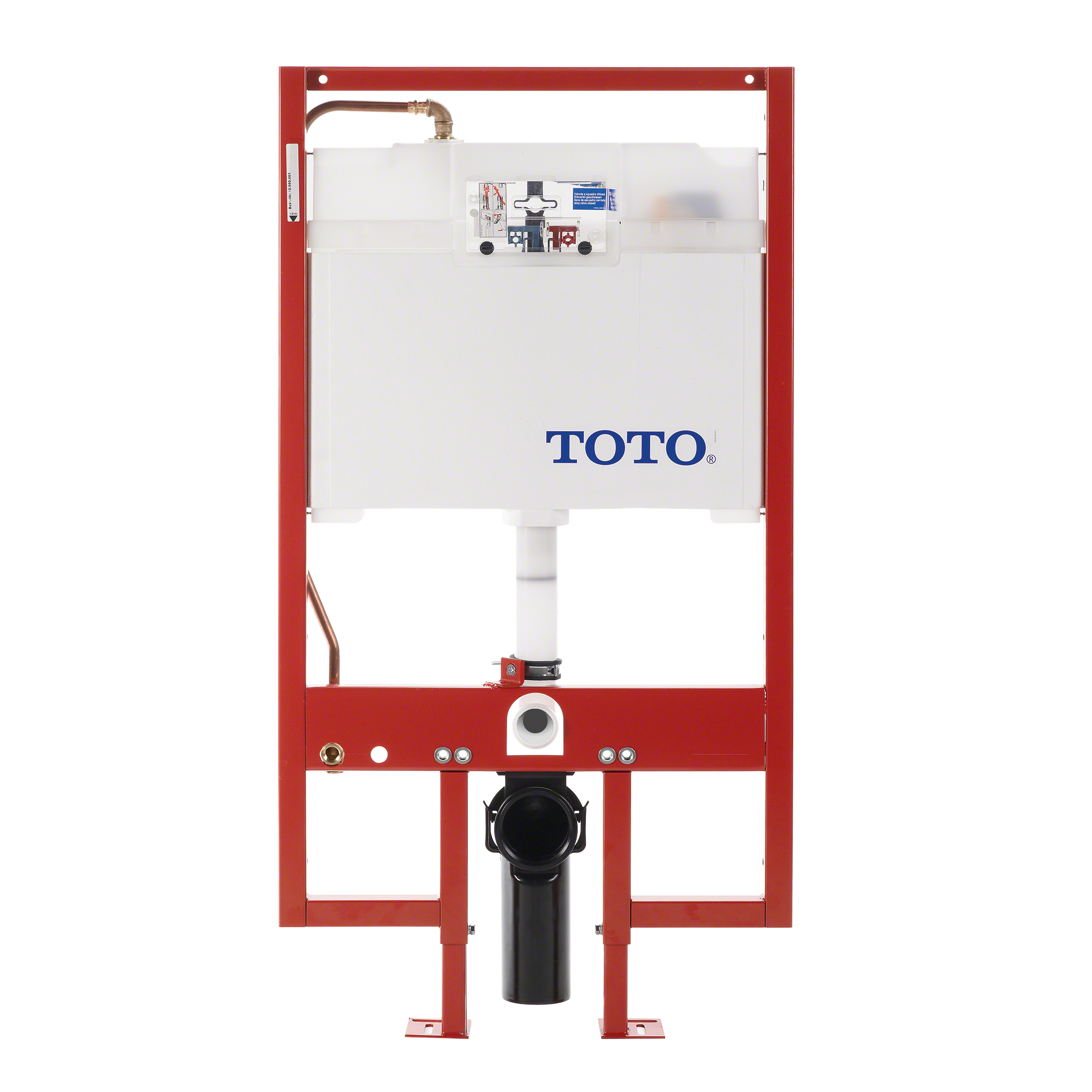The TOTO DuoFit In-Wall Dual Flush 0.9 and 1.6 GPF Tank System Copper Supply Line and White Rectangular Push Plate provides you with the opportunity to save up to 9 inches of floor space within your bathroom. The DuoFit provides a dual flush option with TOTO’s Dual-Max®. Dual-Max allows you to provide the right amount of flush for the required job. You can select between a 0.9 or a 1.6 gallons per flush with a push of a button. This system arrives with a rectangular white plastic dual flush push plate. The DuoFit harness allows you to select a mounting height of 15 to 19 inches. This provides the opportunity for you to establish a comfortable bowl height for a wide array of individuals. The in-wall unit can support up to 880lbs when installed properly. The kit arrives ready to be installed within a 2” x 6” stud setting. If you require installation within a 2” x 4” setting, you will need to additionally purchase TOTO’s 2” x 4” PVC outlet kit (THU343). This comes with a Copper supply and a 2” x 6” polyethylene waste outlet. If you want to enhance the toilet you choose with a WASHLET® bidet seat, there is a pre-attached Copper supply built into the system. You will additionally have to purchase a TOTO WASHLET Connection kit to complete your WASHLET install (THU468). This DuoFit requires the toilet bowl to be purchased separately.