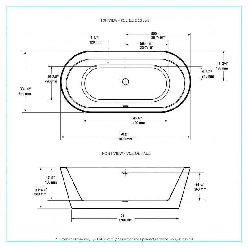• Bonde et trop-plein chromés inclus