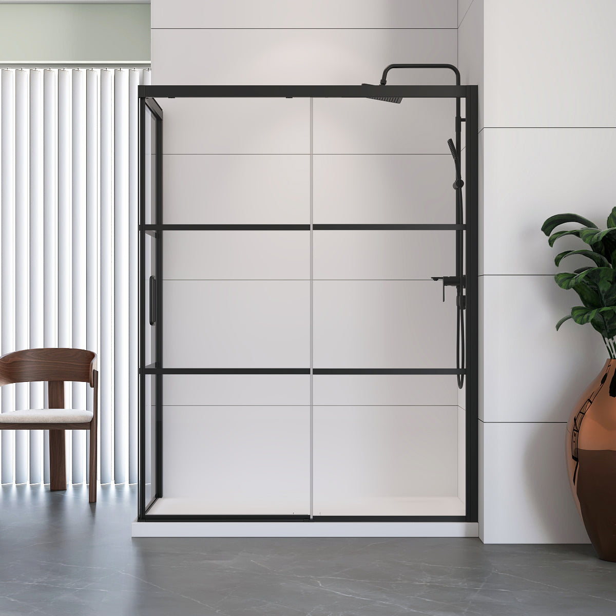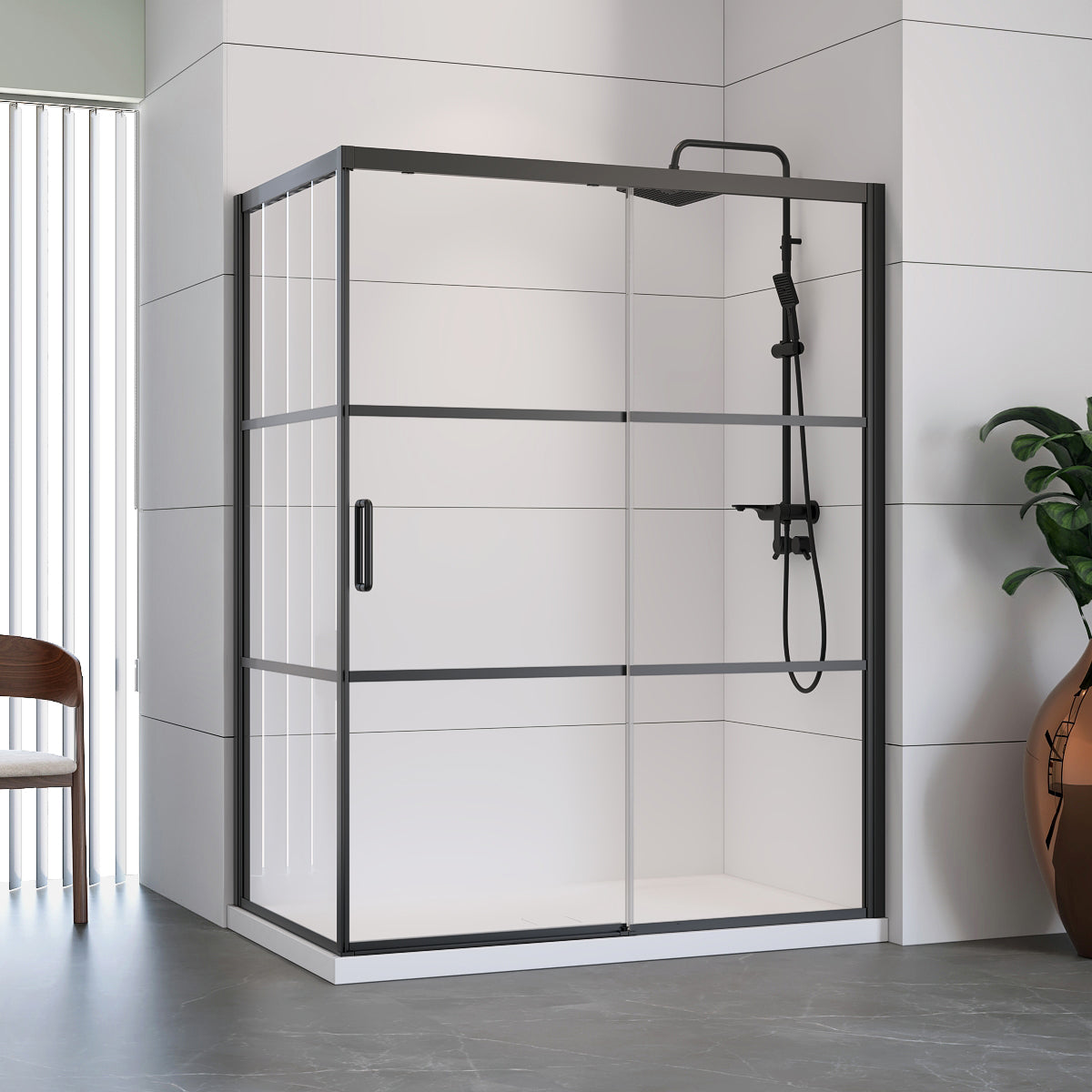 • Porte de douche avec panneau de retour et receveur