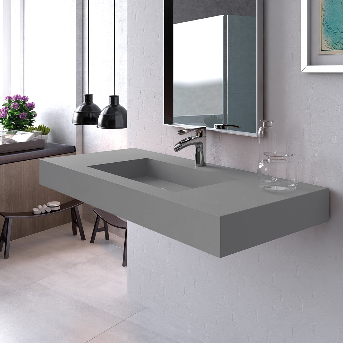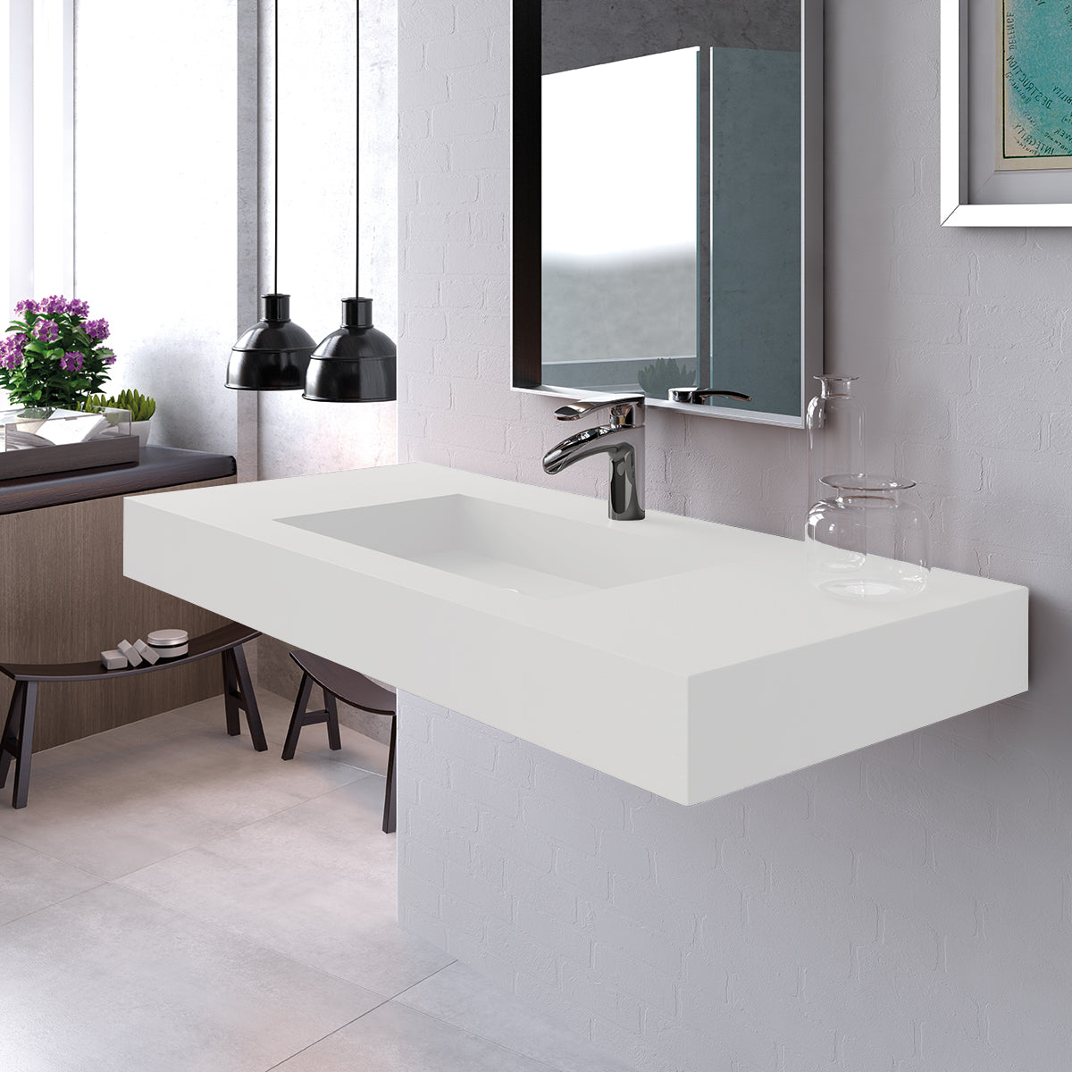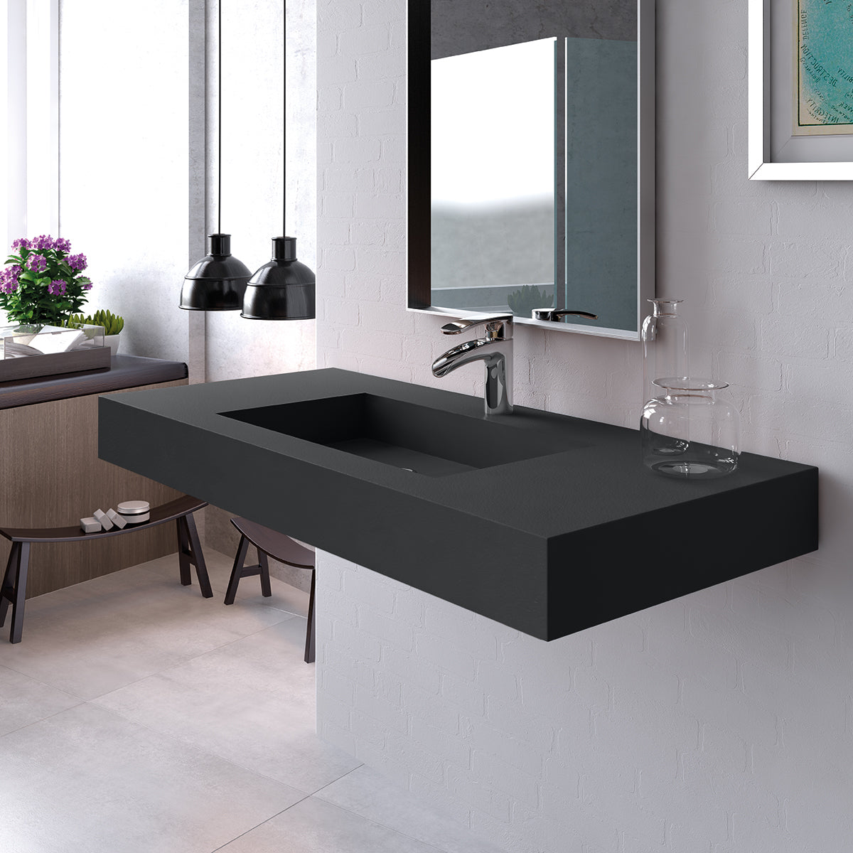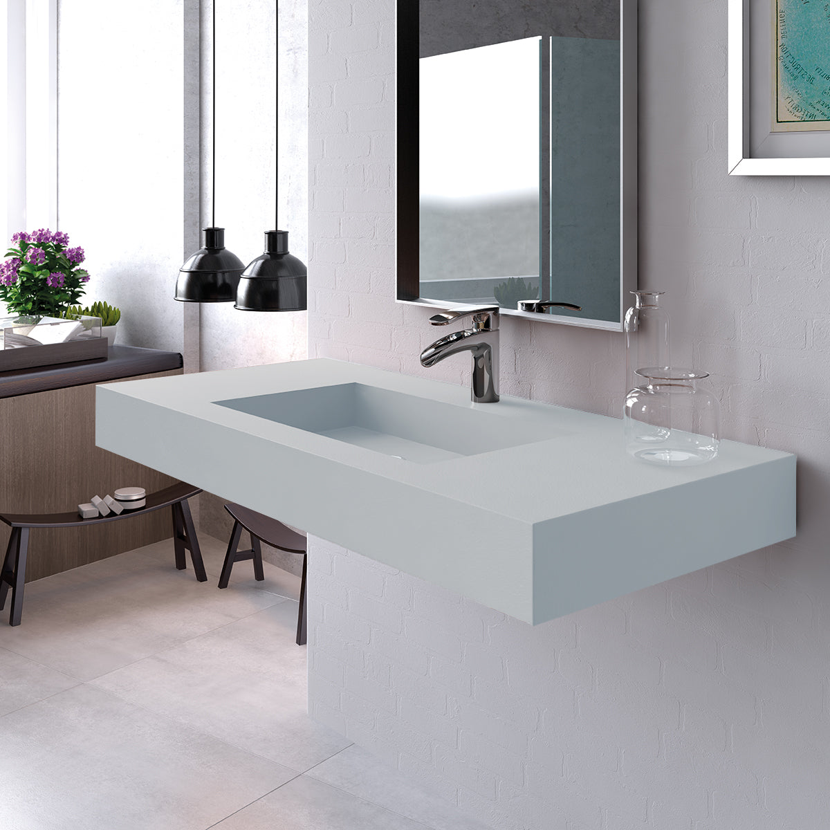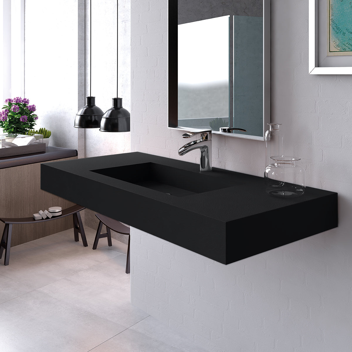 Wall-mounted for a modern floating effect, the Petra sink enhances the overall aesthetic while maximizing space.