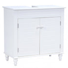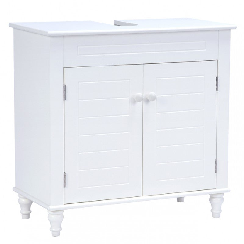 Add an element of style to your bathroom decor with the refined simplicity of the Columbus III free standing bathroom vanity. The cabinet interior offers ample storage space for an assortment of bathroom essentials. Sized to 24 x 18w x 30”, this vanity will maximize your space with a tasteful look. A smooth white coating with solid wood carved legs and a durable MDF wood design will complement your space for a long time.