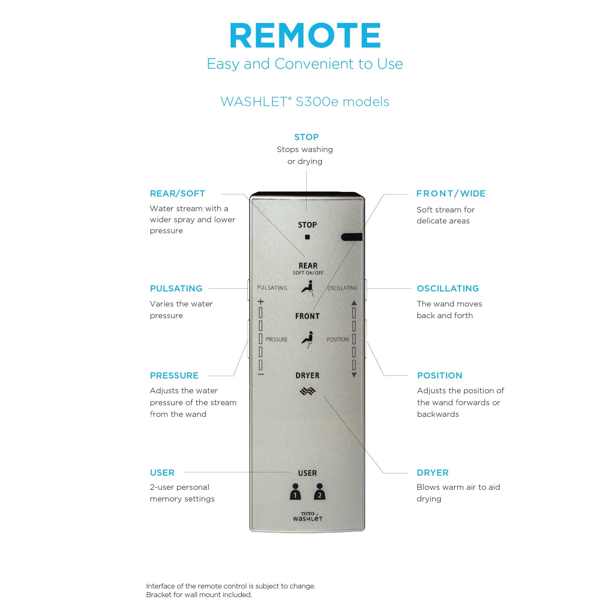WASHLET S300e Remote Control with Mounting Bracket - THU9490